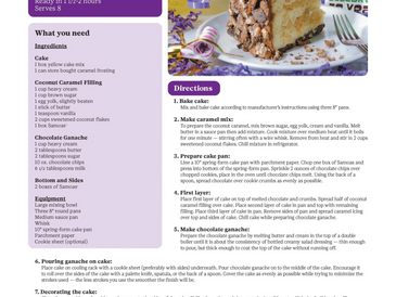 Vanilla cookies topped with caramel, sprinkled with toasted coconut, and laced with chocolaty stripes.